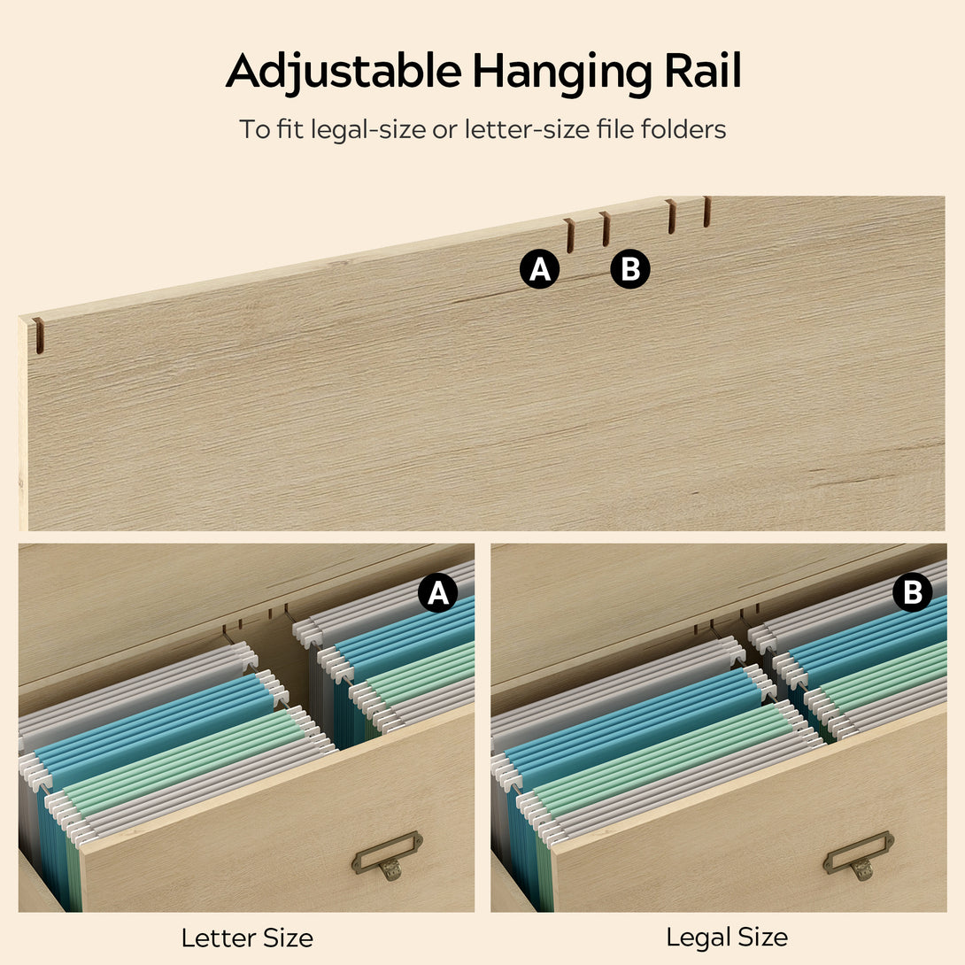 - Adjustable Hanging Rail: The two file drawers include 4 adjustable hanging rods that allow you to easily organize Legal-sized and Letter-sized documents. This thoughtful design provides flexible storage options to keep your important documents neatly organized and ready to go