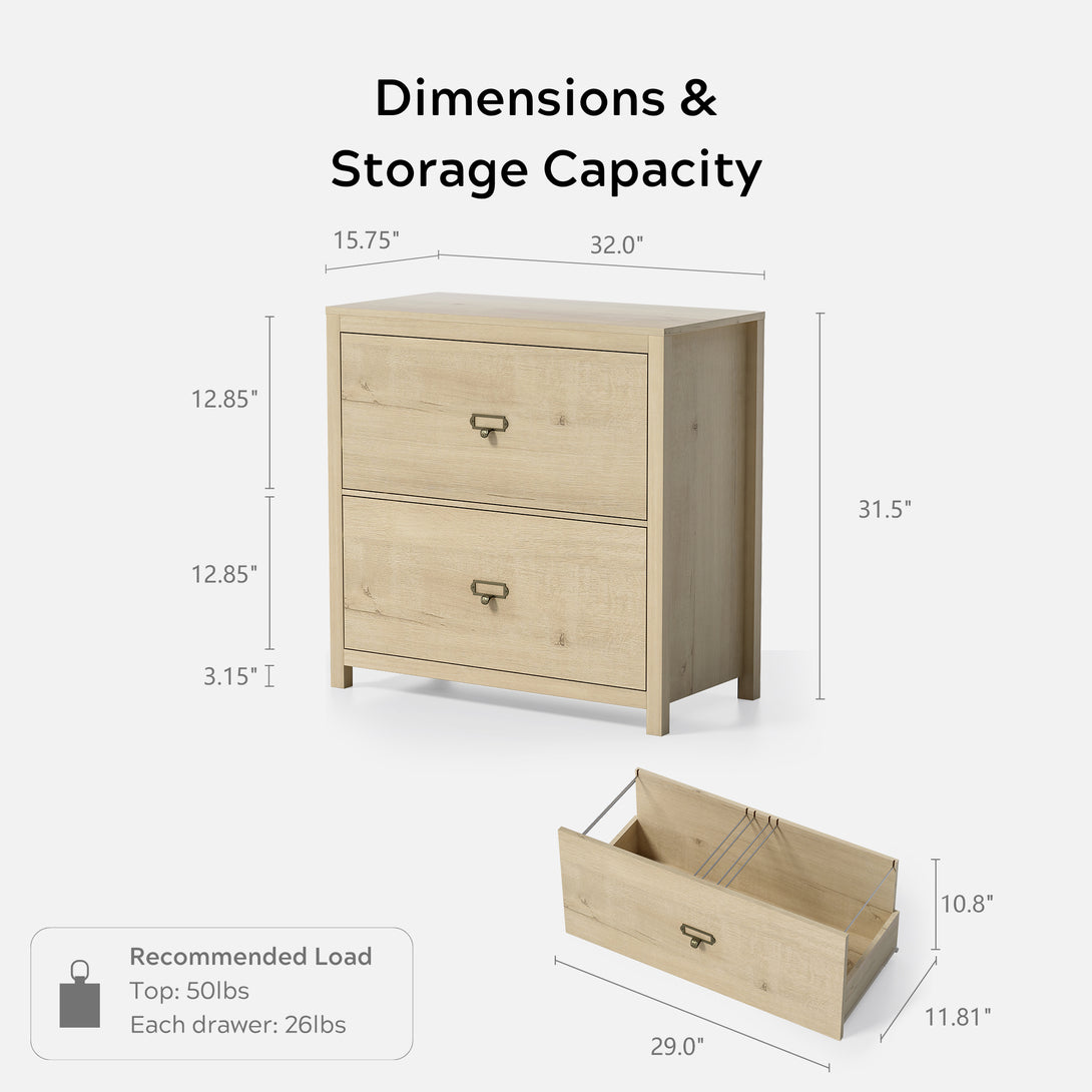 Large File Cabinet with 2 Drawers Modern Wood Vertical File Cabinet for A4 Legal Letter Sized Documents